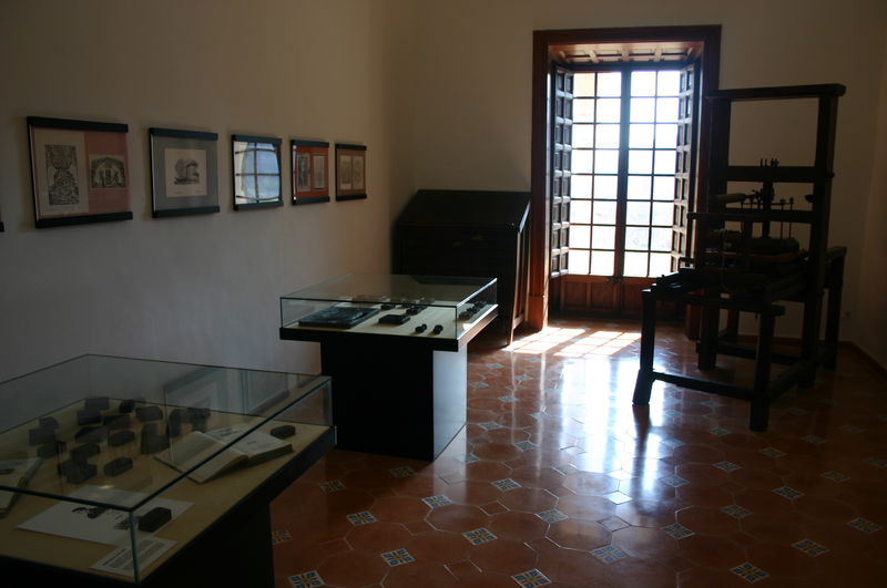 One of the oldest ant best preserved in Europe, this press and part of the 1.450 woodcut blocks (Mallorca 16th-19th c.) are exhibited.